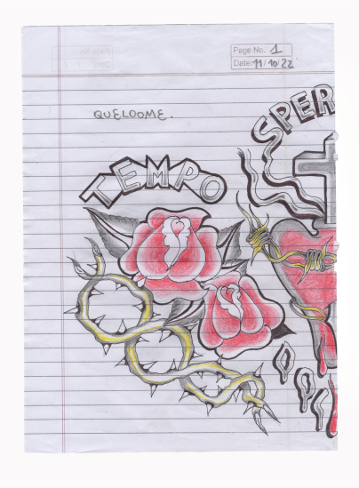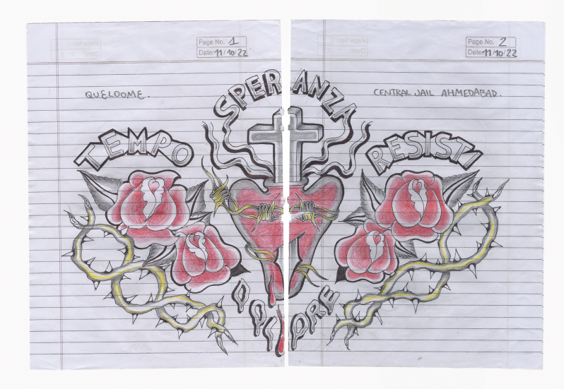 Disegno realizzato in carcere influenzato dai compagni di blocco africani che ogni domenica celebravano la messa protestante.