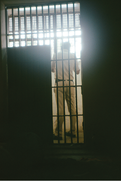 La guardia di turno nel momento in cui ci volta le spalle.