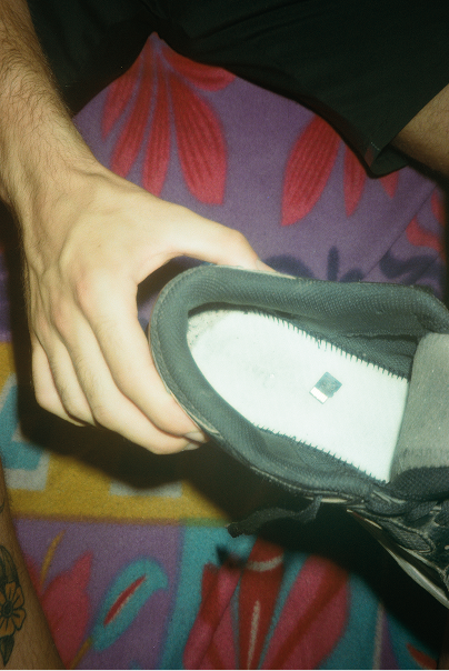 Micro SD card nascosta sotto la suola della scarpa durante la permanenza in carcere.