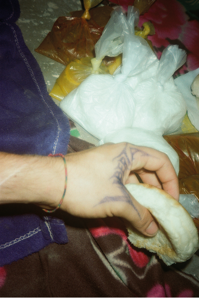 Il cibo in cella era servito in delle buste. In questo caso era riso, due tipi di zuppe e del pane.